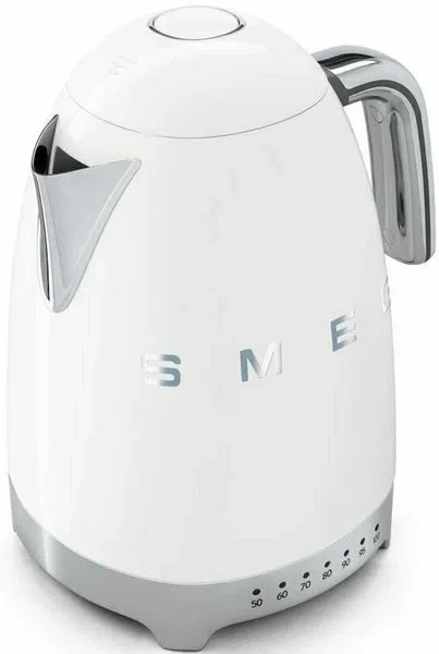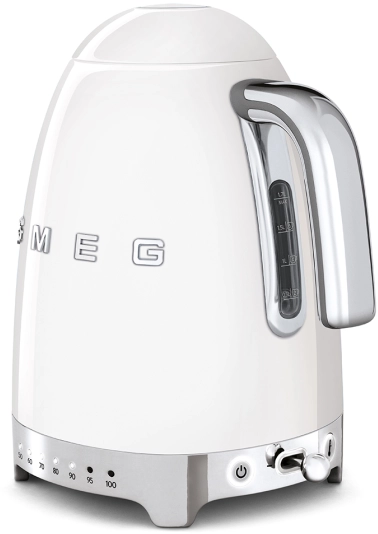 Электрический чайник Smeg KLF04WHEU представляет собой стильное устройство из коллекции «стиль 50-х» с корпусом из полированной нержавеющей стали.